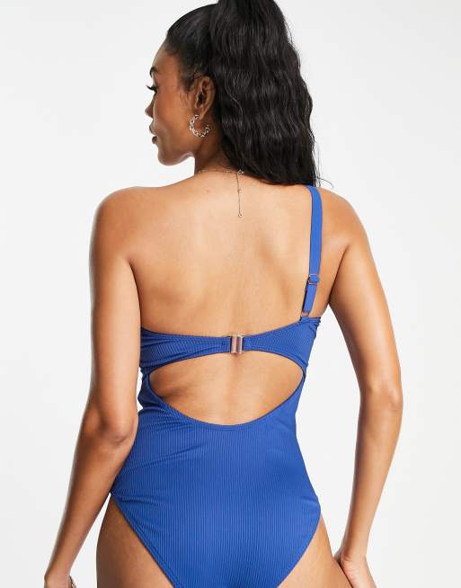 Product id: Blue one best sale shoulder swimsuit